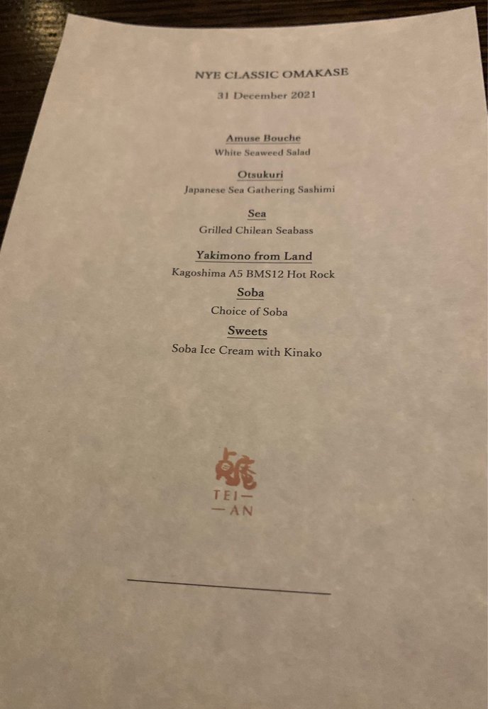 Tei-An Menu (2025 Update)